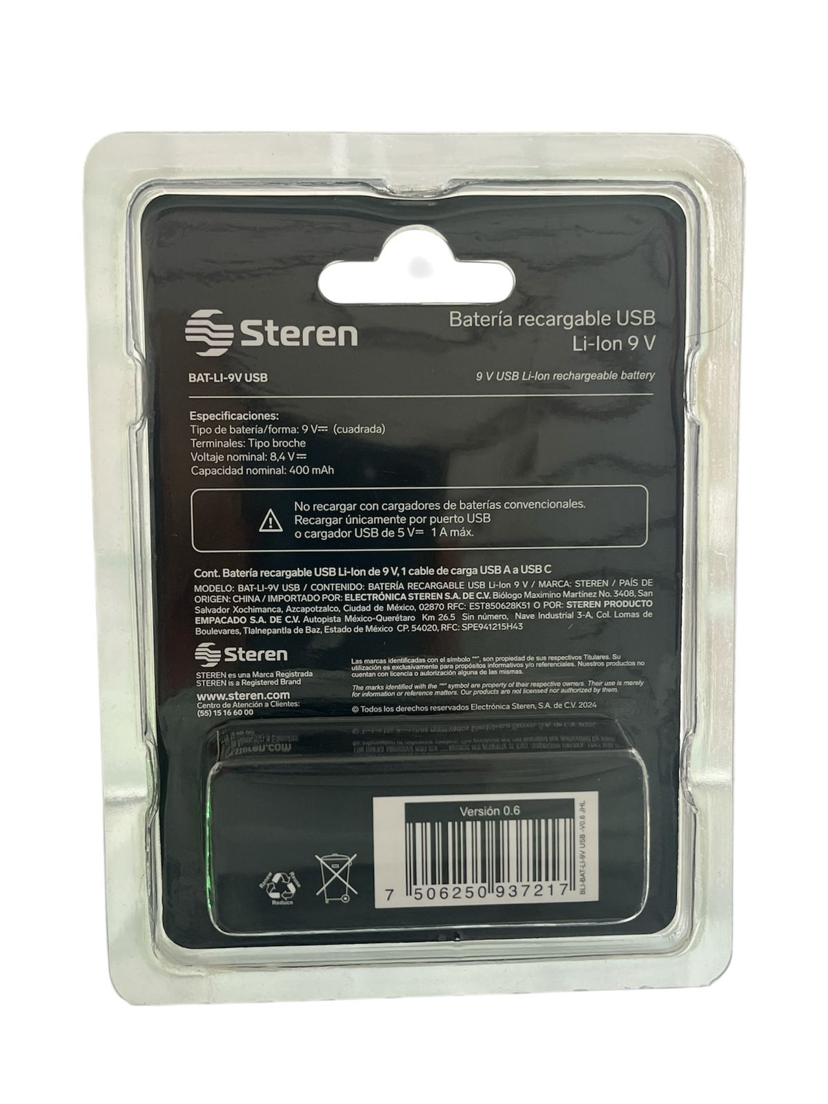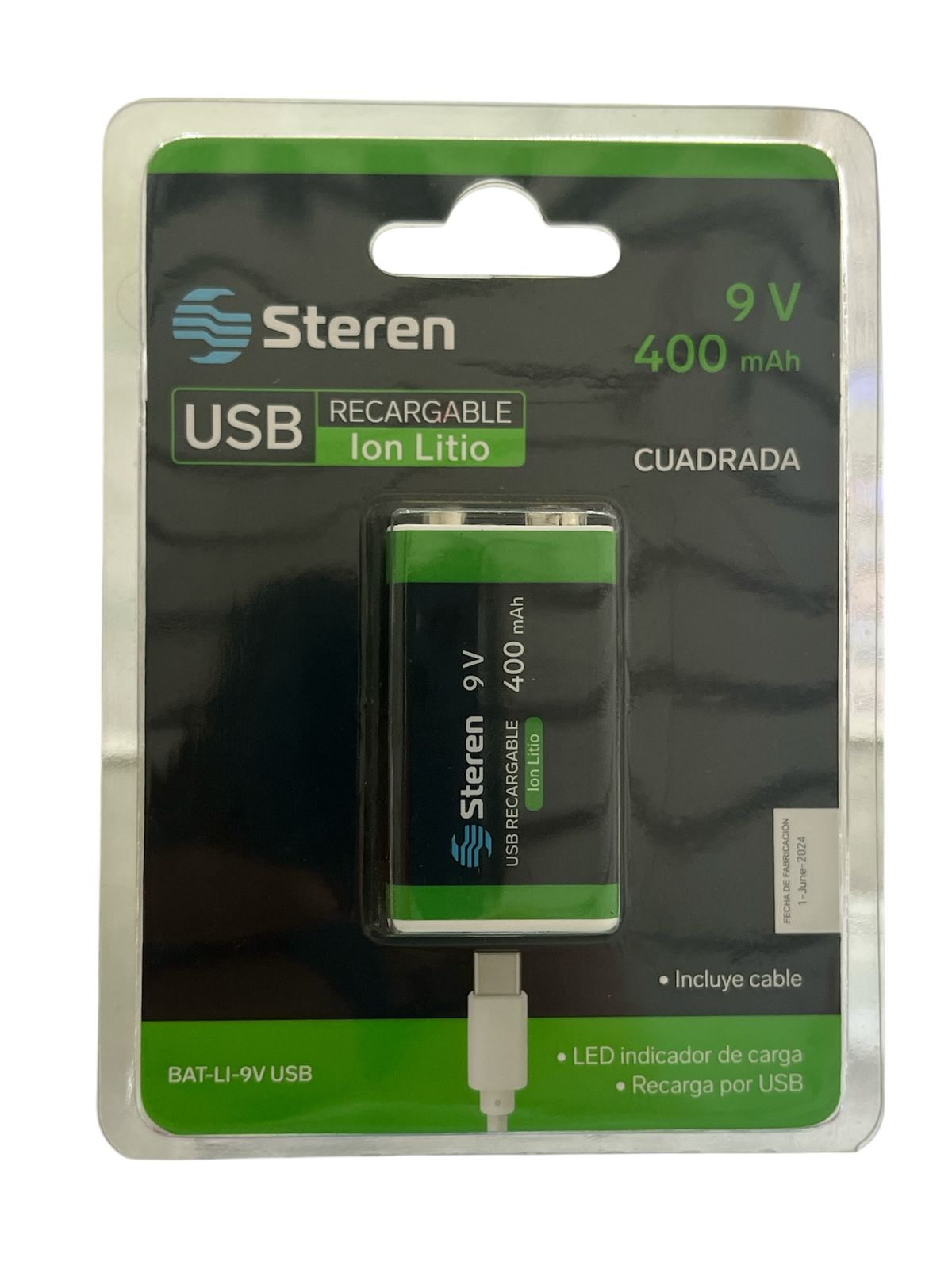 Batería recargable USB Li-Ion tipo 9V cuadrada , de 3600 mWh