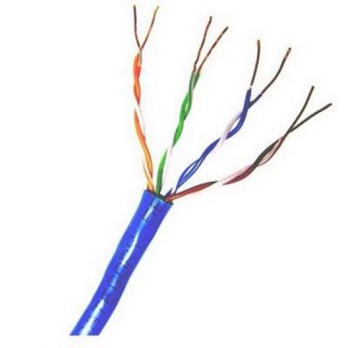 "Cable para redes UTP (Par trenzado sin blindar) de Categoría 5e, color azul, con 4 pares calibre 23 AWG, útil para la transmisión de voz y datos a una velocidad de 1 Gbps (Giga bit por segundo). Se vende por metro o en rollo de 305 m.