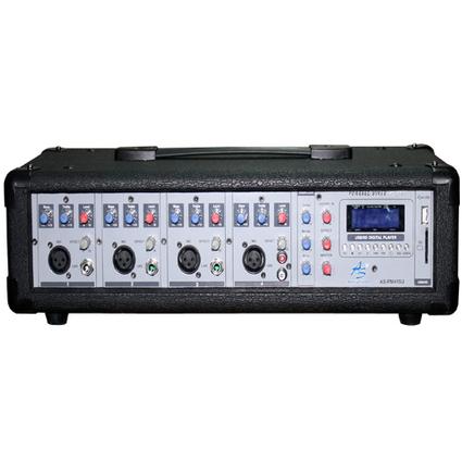 | Especificaciones • 4 canales de entrada de micrófono / línea • 2 pares de RCA para cinta y REC. Out. • EQ 2 bandas en cada canal de entrada • Efecto Delay Digital • Un 1/4 "Phone Jack para salida de línea en el panel posterior • Entrada de alimentación: AC115V 60Hz • Potencia de salida:. 150w Max 4 Ohm |