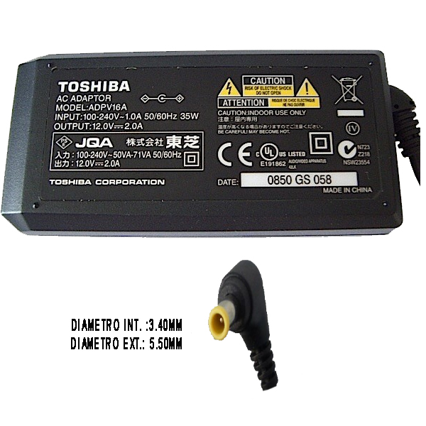 ELIMINADOR 12V 2A TOSHIBA PLUG AMARILLO MOD: ADPV16A
