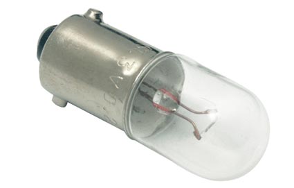 Foco miniatura de bayoneta, de 6,3 Volts, 1,57 Watts, 250 mA y 9 candelas. Mide 9,9 mm de diámetro y su vida útil es de 3000 horas.
