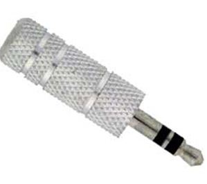 Conector de audio macho (plug) de 3,5 mm, estéreo, para extensión de cable de micrófono. Fabricado en metal color plata.