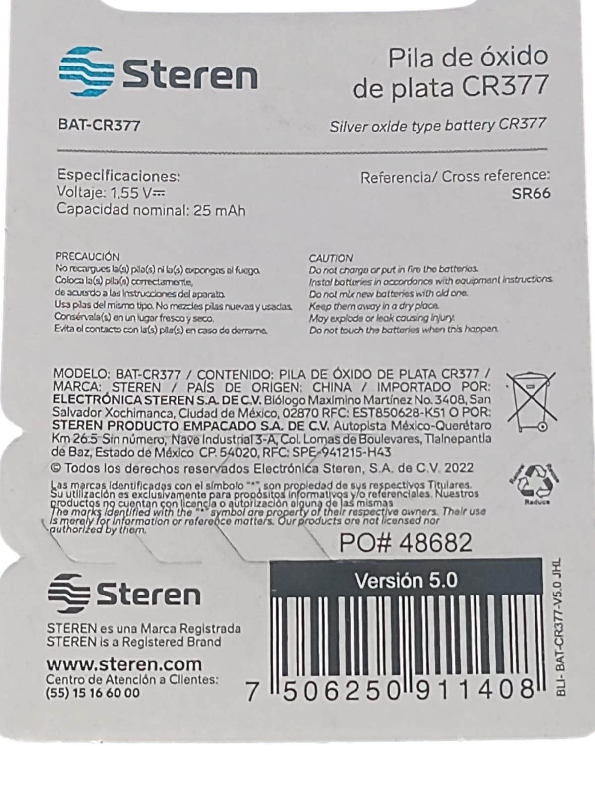 Equivalencias: SR66 / AG4 / SR626SW / V377 / D377 / S626E