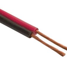 Cable duplex bicolor, fabricado en cobre calibre 18 AWG, temperatura maxima 60 grados Centigrados y presentacion en rollo de 500 m. Se utiliza en la conexion entre bocinas y equipos de sonido.