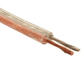 Cable duplex polarizado, transparente, de calibre 16 AWG, útil para la conexión entre bocinas. Se vende por metro o en rollo de 100 m.