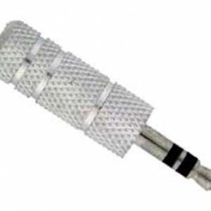 Conector de audio macho (plug) de 3,5 mm, estéreo, para extensión de cable de micrófono. Fabricado en metal color plata....